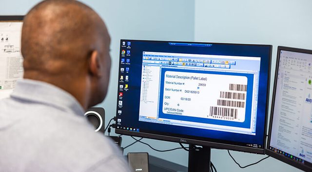 Khalid Bey, Plant Manager for American Wick Drain, designing a label in BarTender