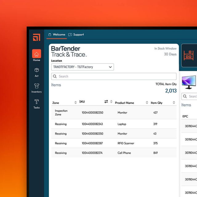 BarTender Track & Trace 協助您找到對企業來說至關重要的物品、庫存,提供物品、資產追蹤解決方案,以便實現完整的營運可見性,還有責任歸屬。